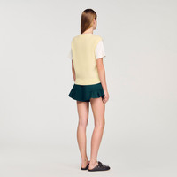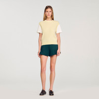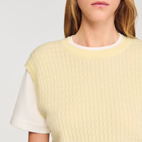 Layered-look sweater made of a wool and cashmere blend rib knit, with a contrasting round neck and short sleeves. - Sandro Women's knit sweater - Round neck - Short sleeves - Wool and cashmere knit - Layered effect - True to size Reference: SFPPU02402_520 COMPOSITION & CARE Composition - Main fabric: 89% wool, 11% cashmere - Sleeves: 59% cotton, 24% viscose, 17% polyamide - Rib: 81% wool, 10% cashmere, 9% polyamide Care advice - Hand wash - Do not bleach - Do not tumble dry - Iron at a maximum temperature of 110°C without steam - F - Professional dry clean, with hydrocarbon solvent, normal treatment