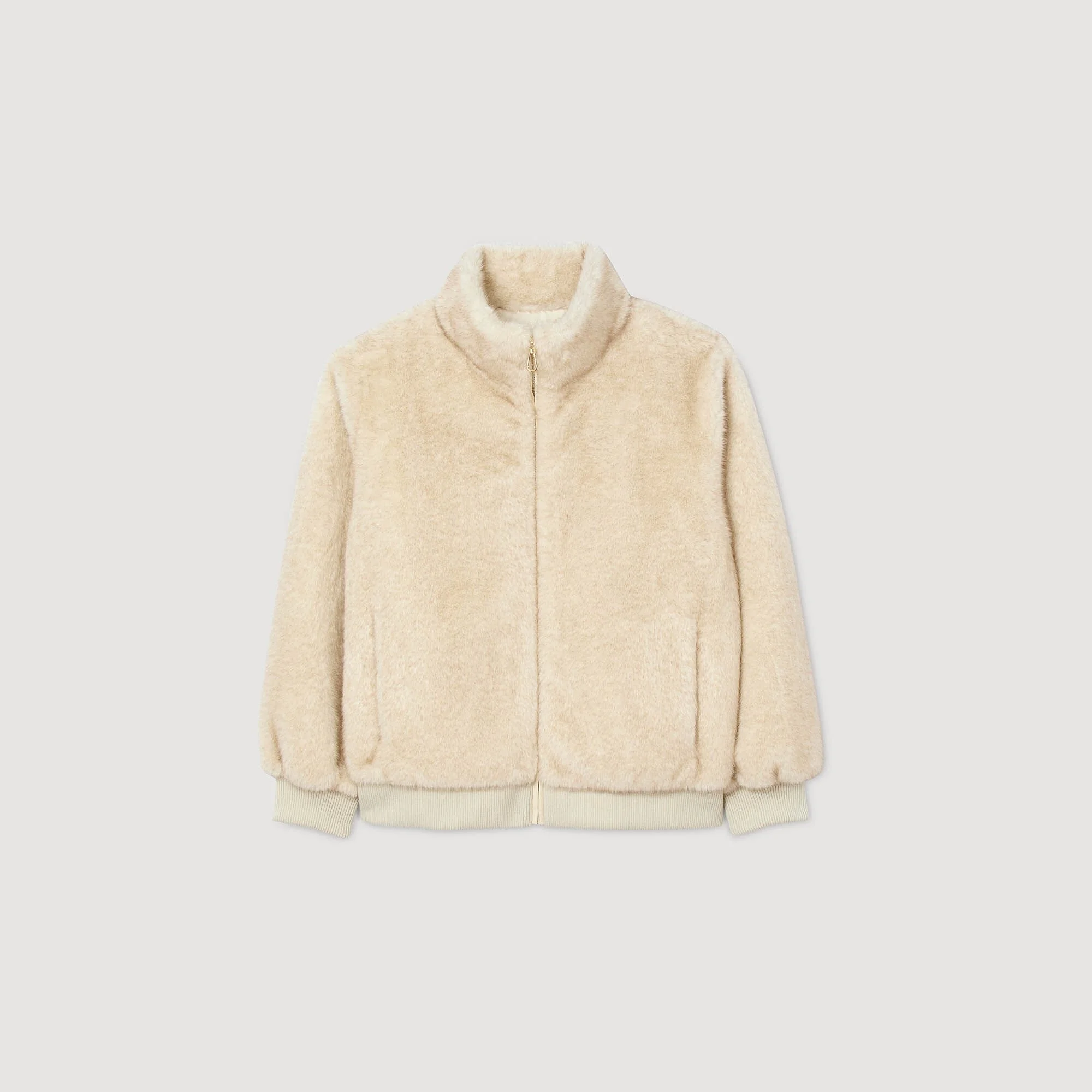 Faux fur jacket with stand-up collar, long sleeves and zip fastening. - Sandro Women's faux fur jacket - High neck - Long sleeves - Zip fastening - Ribbed waist and cuffs - Designed for a boxy fit Reference: SFPOU00578_16 COMPOSITION & CARE Composition - Lining: 55% polyester, 45% viscose - Faux fur: 100% polyester - Piping: 100% polyurethane - Rib: 100% polyester Care advice - Do not wash - Do not bleach - Do not tumble dry - Do not iron - F/ - Professional dry clean, with hydrocarbon solvent, gentle treatment