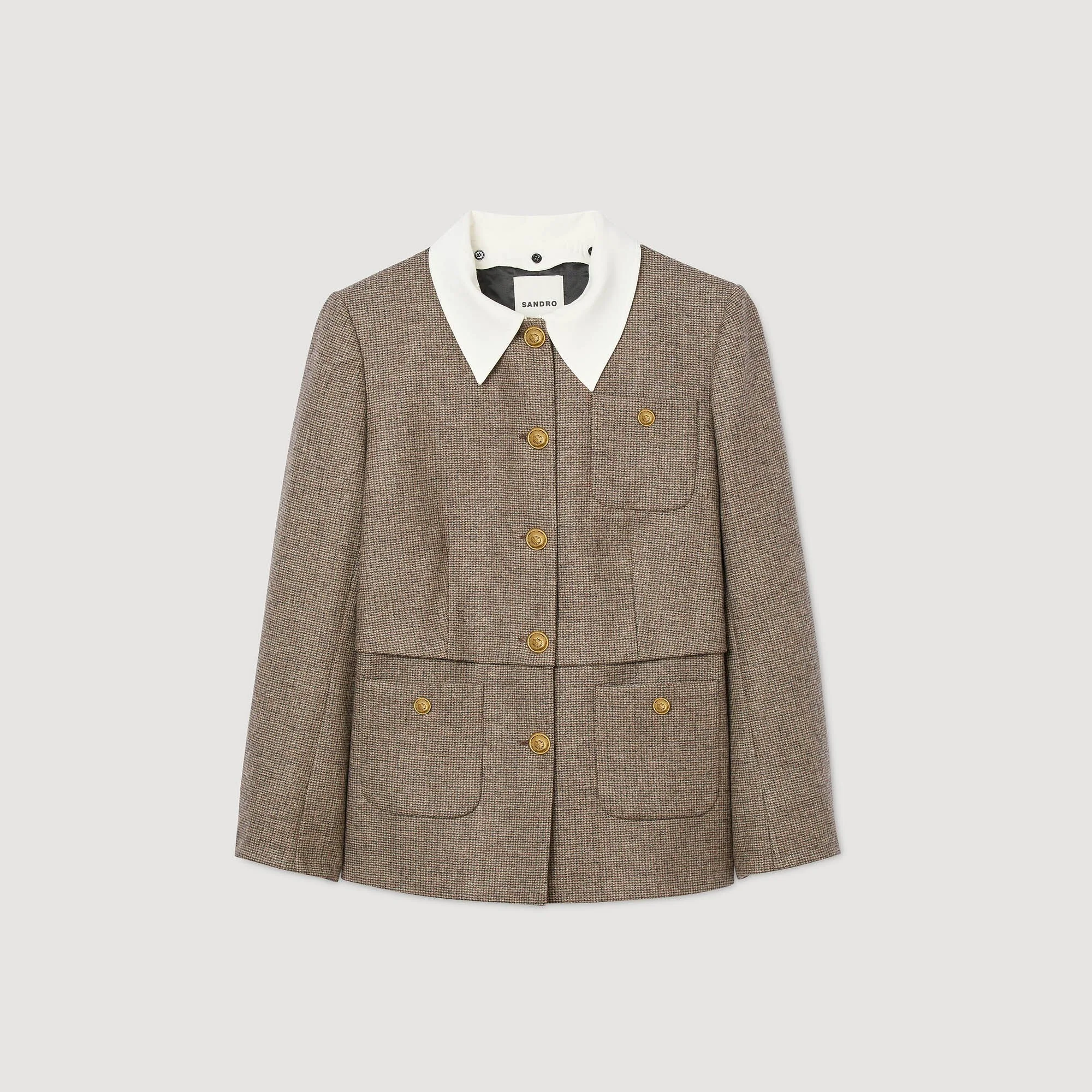 Reference: SFPVE01235_G023 COMPOSITION & CARE Composition - Main material: 60% virgin wool, 38% polyester, 2% elastane - Lining: 100% viscose - Removable collar: 100% viscose - Pocket lining: 100% cotton Care advice - Do not wash - Do not bleach - Do not tumble dry - Iron at a maximum temperature of 110°C without steam - F/ - Professional dry clean, with hydrocarbon solvent, gentle treatment