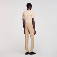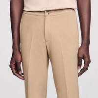 Sandro men’s pants • Jersey pants • Button fastening at the front • Elasticated waist at the back • Slanted pockets at the front • Two piped pockets at the back • The model is wearing a size 38 The model is 189 cm / 6'2 tall and wears a size 38 / 10 UK COMPOSITION Main fabric: 68% polyester, 28% viscose, 4% elastane Pocket lining: 100% cotton Reference: SHPPA00609_16
