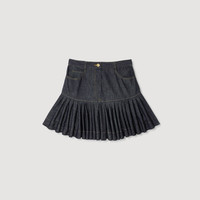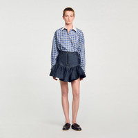 Mini raw denim skirt with ruffles and contrasting topstitching. - Sandro Women's mini skirt - Topstitched raw denim - Hip cut with voluminous ruffle - Front pockets - Zip and button fastening - Designed for a flared fit Reference: SFPJU01507_D324 COMPOSITION & CARE Composition - Main material: 100% cotton - Pocket lining: 100% cotton Care advice - Do not wash - Do not bleach - Do not tumble dry - Iron at a maximum temperature of 110°C without steam - F/ - Professional dry clean, with hydrocarbon solvent, gentle treatment