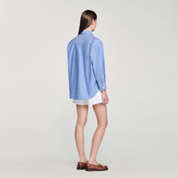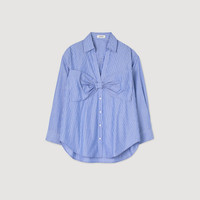 Oversized striped shirt with a V-neckline and shirt collar, long sleeves with buttoned cuffs and a large pleated bow on the front. - Sandro Women's oversized striped shirt - V-neckline with shirt collar - Long sleeves with buttoned cuffs - Pleated bow on front - Asymmetric shirt hem - Designed for an oversized fit Reference: SFPCM01457_D251 COMPOSITION & CARE Composition - Main material: 100% cotton - Buttons: 100% nacre Care advice - Regular cycle 30° - Do not bleach - Do not tumble dry - Iron at a maximum temperature of 150°C - F/ - Professional dry clean, with hydrocarbon solvent, gentle treatment