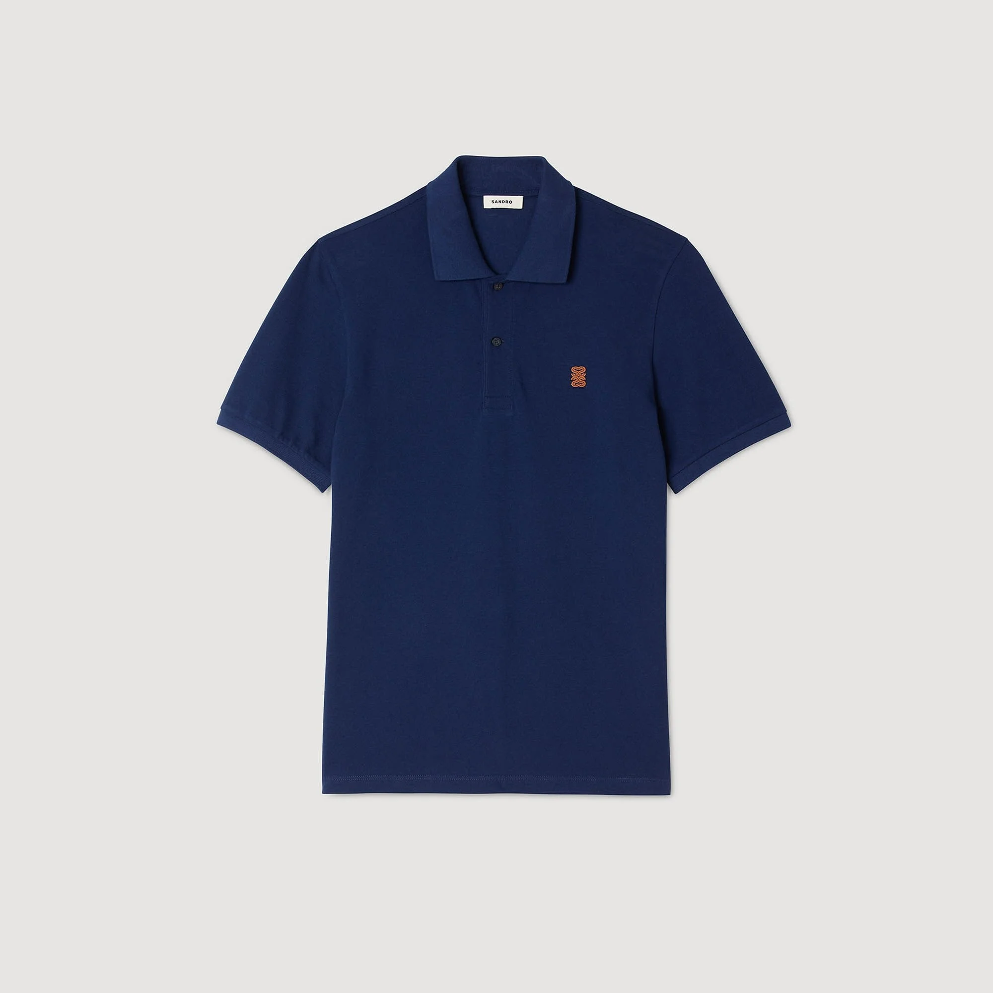 Short-sleeved cotton pique polo shirt with polo collar and leather 4S patch on the chest. - Sandro Men's cotton polo shirt - Polo collar with button placket - Short sleeves - Leather 4S patch - True to size Reference: SHPTS01669_44 COMPOSITION & CARE Composition - Main fabric: 100% cotton - Rib: 98% cotton, 2% elastane Care advice - Gentle cycle 30° - Do not bleach - Do not tumble dry - Iron at a maximum temperature of 110°C without steam - Do not dry clean