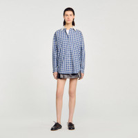 Oversized checkered shirt with rhinestone embellishments, featuring a contrasting collar, long sleeves and a button fastening. - Sandro Women's oversized checkered shirt - Contrasting shirt collar - Shirt hem - Long sleeves with high cuffs - Button fastening - Checks and rhinestones - Designed for an long, oversized fit Reference: SFPCM01452_47 COMPOSITION & CARE Composition - Main material: 100% cotton - Collar: 100% cotton Care advice - Hand wash - Do not bleach - Do not tumble dry - Iron at a maximum temperature of 110°C without steam - Do not dry clean