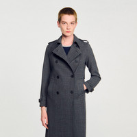 Checked trench coat embellished with rhinestones, with long sleeves, a lapel collar, a storm flap and buttoned tabs on the shoulders and cuffs. - Sandro Women's rhinestone checked trench coat - Lapel collar - Long sleeves - Wide welt pockets - Storm flap - Button fastening at the front - Martingale and inverted pleat at the back - True to size Reference: SFPOU00720_B315 COMPOSITION & CARE Composition - Main material: 64% polyester, 33% viscose, 3% elastane - Lining: 100% viscose - Pocket lining: 100% cotton Care advice - Do not wash - Do not bleach - Do not tumble dry - Iron at a maximum temperature of 110°C without steam - F/ - Professional dry clean, with hydrocarbon solvent, gentle treatment