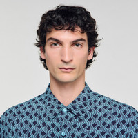 Flowing printed shirt adorned with a rope motif, featuring a broken collar, short sleeves, and button fastening. - Sandro Men's printed shirt - Broken collar - Short sleeves - Front button fastening - Rope motif - Designed for a loose fit Reference: SHPCM01436_44 Care advice - Do not wash - Do not bleach - Do not tumble dry - Iron at a maximum temperature of 110°C without steam - F/ - Professional dry clean, with hydrocarbon solvent, gentle treatment