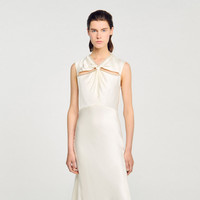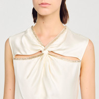Maxi, flowy satin-effect dress with a crossover neckline and openwork adorned with a rhinestone trim. - Sandro Women's maxi satin-effect dress - Crossover neckline with rhinestone trim - Cut-out at the neckline - Sleeveless - Back zip fastening - Lined - Designed for a loose fit Reference: SFPRO04368_11 COMPOSITION & CARE Composition - Main material: 100% viscose - Lining: 100% polyester Care advice - Do not wash - Do not bleach - Do not tumble dry - Iron at a maximum temperature of 110°C without steam - F/ - Professional dry clean, with hydrocarbon solvent, gentle treatment