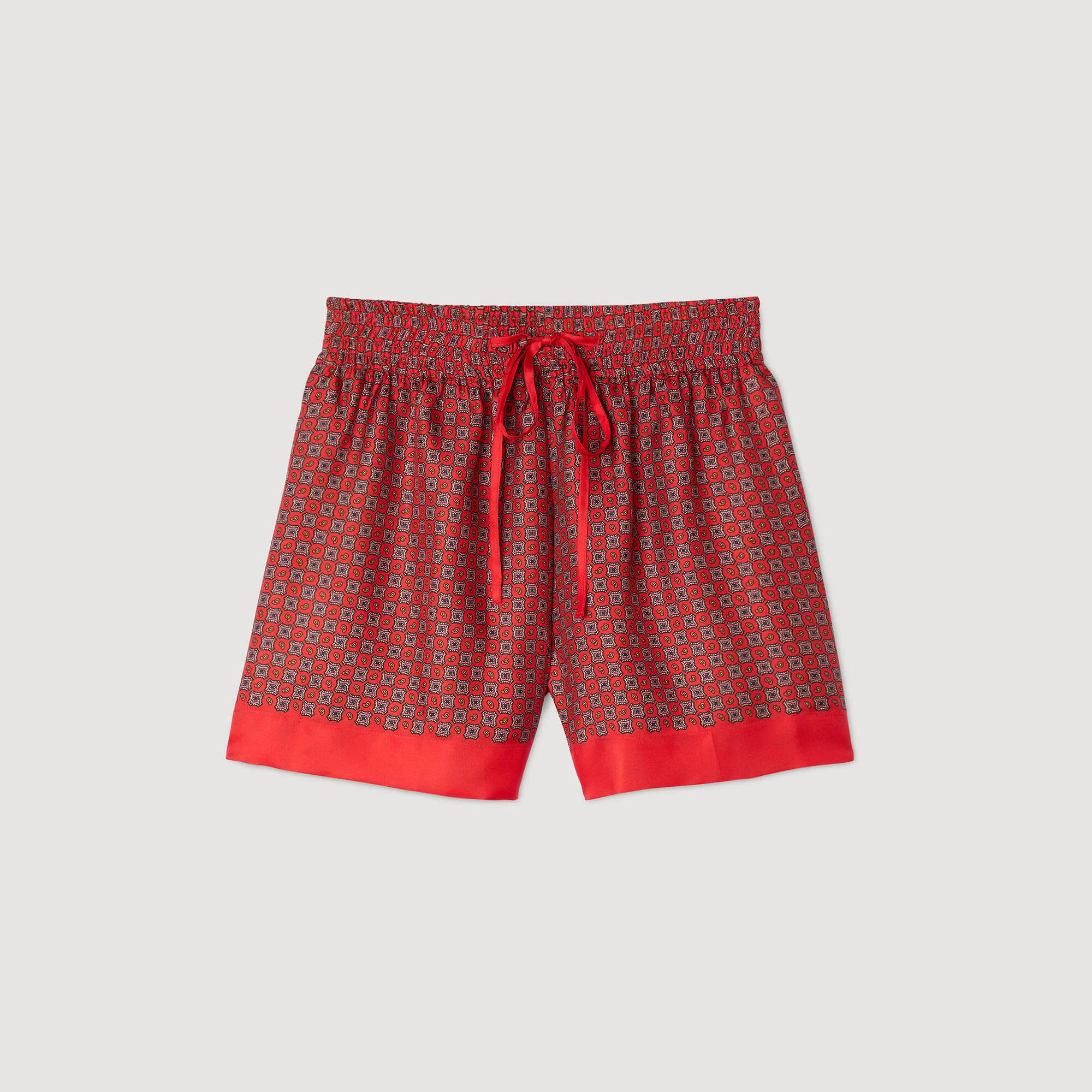 Flowy boxer-style shorts with a scarf print and an elasticated waistband with ties. - Sandro Women's printed shorts - Scarf motif - Side pockets - Flared shape - Plain hem - Designed for a flared fit Reference: SFPSH00542_C124 COMPOSITION & CARE Composition - Main material: 100% viscose Care advice - Do not wash - Do not bleach - Do not tumble dry - Iron at a maximum temperature of 110°C without steam - F/ - Professional dry clean, with hydrocarbon solvent, gentle treatment