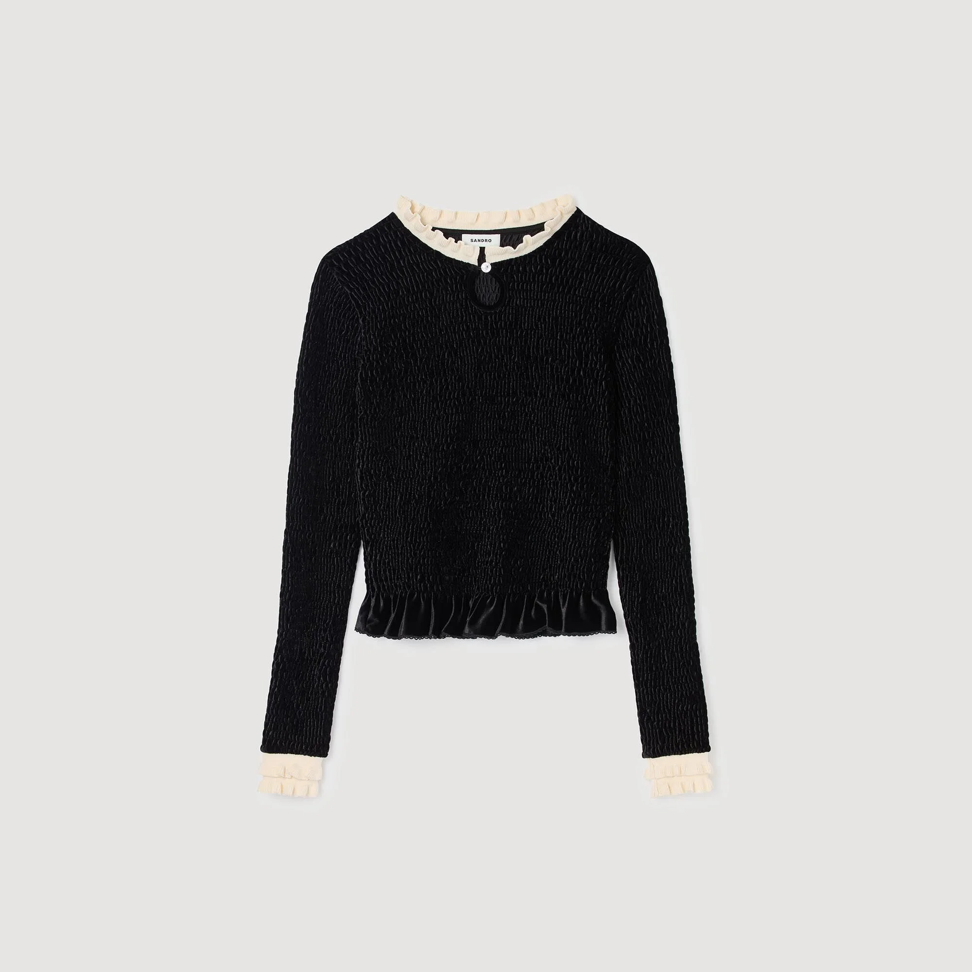 Reference: SFPTS01714_B275 COMPOSITION & CARE Composition - Main material: 92% polyester, 8% elastane - Secondary fabric: 100% polyester - Bias binding: 100% cotton Care advice - Hand wash - Do not bleach - Do not tumble dry - Do not iron - Do not dry clean