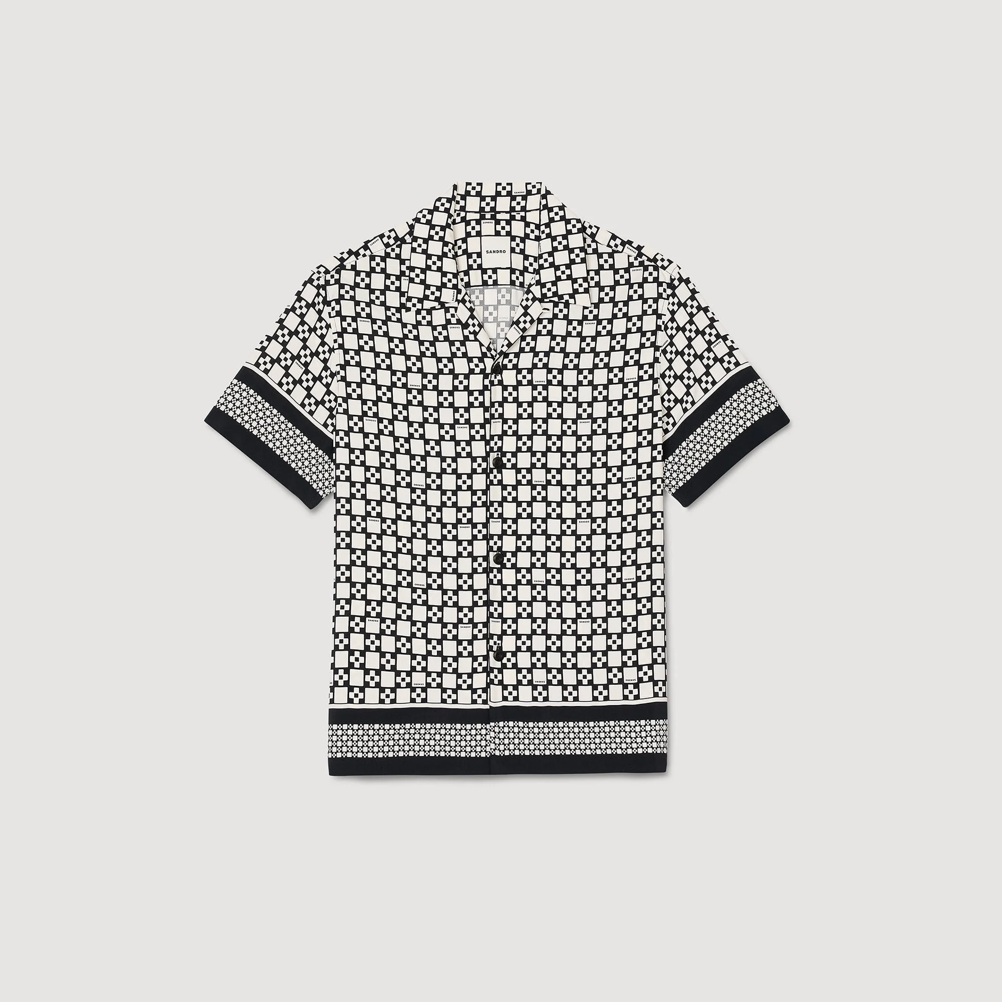 Flowing shirt with a square cross motif, featuring a shark collar, short sleeves and button fastening. - Sandro Men's loose-fit shirt - Square cross motif - Shark collar - Button fastening - Short sleeves - Designed for a loose fit Reference: SHPCM01270_20 COMPOSITION & CARE Composition - Main fabric: 100% viscose Care advice - Do not wash - Do not bleach - Do not tumble dry - Iron at a maximum temperature of 110°C without steam - F/ - Professional dry clean, with hydrocarbon solvent, gentle treatment