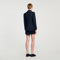 Striped suit jacket with double-breasted fastening, side flap pockets and rear vent. Sandro Women's suit jacket Striped Flap pockets on sides Chest pocket Vent at the back Lapel collar The model is 178 cm / 5'10 tall and wears a size 36 FR / 4 US COMPOSITION Main fabric: 54% polyester, 44% wool, 2% elastane Lining: 100% viscose Under collar: 100% polyester Pocket lining: 100% cotton Reference: SFPVE01114_20
