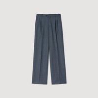 Straight-leg, wide-leg striped trousers with pleat details at the waist, featuring Italian pockets and buttoned welt pockets at the back. - Sandro Women's wool trousers - Ironed creases down the legs - Italian and welt pockets - Belt loops - True to size Reference: SFPPA01788_47 COMPOSITION & CARE Composition - Main material: 52% polyester, 27% wool, 17% viscose, 4% elastane - Fusible interfacing: 100% polyester - Belt lining: 91% cotton, 9% polyester - Pocket lining: 100% cotton Care advice - Do not wash - Do not bleach - Do not tumble dry - Iron at a maximum temperature of 110°C without steam - F/ - Professional dry clean, with hydrocarbon solvent, gentle treatment