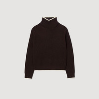 Long-sleeved knit sweater with turtleneck and contrast piping. - Sandro Women's turtleneck sweater - Long sleeves - Contrasting edging - Ribbed trim - True to size Reference: SFPPU02454_751 COMPOSITION & CARE Composition - Main fabric: 75% wool, 25% cashmere - Collar: 67% wool, 26% cashmere, 6% polyamide, 1% elastane - Rib: 70% wool, 24% cashmere, 5% polyamide, 1% elastane Care advice - Hand wash - Do not bleach - Do not tumble dry - Iron at a maximum temperature of 110°C without steam - F - Professional dry clean, with hydrocarbon solvent, normal treatment
