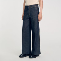 Wide-leg, flared jeans with contrast topstitching, ironed creases, belt loops and pockets. - Sandro Men's denim trousers - Wide, flared fit - Ironed creases - Belt loops - Zip and hook-and-eye fastening - 2 front pockets and 2 back flap pockets Reference: SHPJE00630_BRUT COMPOSITION & CARE Composition - Main fabric: 100% cotton - Pocket lining: 65% polyester, 35% cotton Care advice - Gentle cycle 30° - Do not bleach - Do not tumble dry - Iron at a maximum temperature of 110°C without steam - F/ - Professional dry clean, with hydrocarbon solvent, gentle treatment