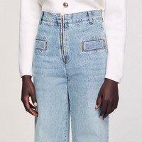 Wide-leg jeans in faded denim with a high waist and belt loops. Sandro Women's wide-leg jeans Wide leg High waist Front zipper Patch pockets on the back The model is 5'10" tall and wears a size 36 FR / 4 US This denim was treated using a process that reduces water consumption by 95% and significantly limits the use of energy and chemicals compared to traditional treatment techniques. The model is 177 cm / 5'9 tall and wears a size 36 FR / 8 UK COMPOSITION Main fabric: 100% cotton Pocket lining: 65% polyester, 35% cotton Reference: SFPJE00467_4785
