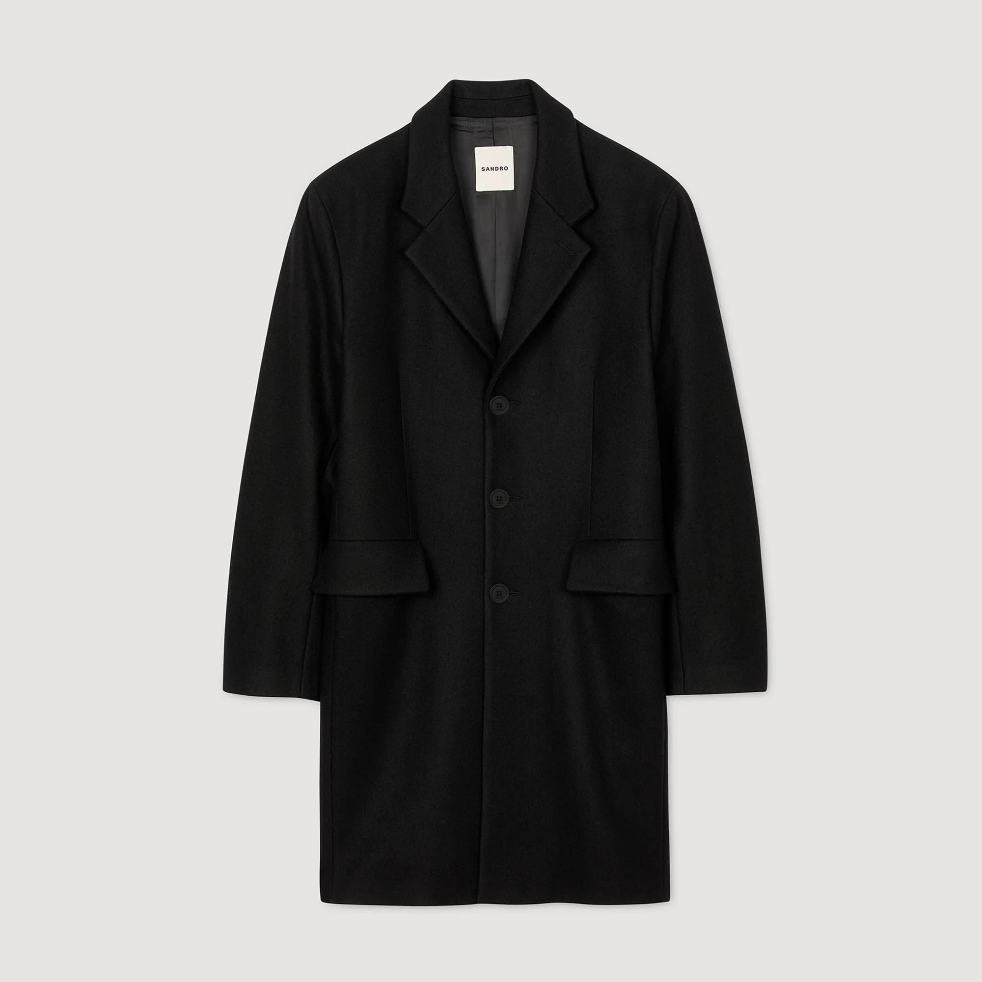 Lined wool broadcloth coat with a lapel collar, long sleeves and button fastening. - Sandro Men's wool broadcloth coat - Lapel collar - Three-button fastening - 2 front flap pockets - Lined interior Reference: SHPMA00382_20 COMPOSITION & CARE Composition - Main material: 70% wool, 20% polyamide, 10% cashmere - Lining: 100% viscose - Pocket lining: 100% cotton Care advice - Do not wash - Do not bleach - Do not tumble dry - Iron at a maximum temperature of 110°C without steam - F/ - Professional dry clean, with hydrocarbon solvent, gentle treatment