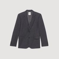 Sandro men's jacket • Wool suit jacket • Tailored collar • Classic cut • Fastened with two buttons • Two flap pockets • Vent at the back • This jacket matches the pants Model is wearing a size 48/UK 38/US 38 and measures 185 cm Occasionally, a few alterations may be necessary to make the suit fit perfectly. If that is the case, please be advised that you can have it delivered to the store or else reserve in store, so that our sales staff can help and advise you on potential alterations. The wool in this item comes from extensive farming, which respects animal welfare and contributes to the preservation of local biodiversity. The model is 189 cm / 6'2 tall and wears a size 46 COMPOSITION Main fabric: 99% wool, 1% elastane Body lining: 55% polyester, 45% viscose Pocket lining: 65% polyester, 35% cotton Reference: SHPVE00559_21