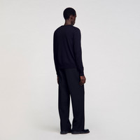 Round neck merino wool sweater featuring fine knit and plain design. - Sandro Men's merino wool sweater - Round neck - Long sleeves - 100% wool - True to size Reference: SHPTR00719_44 COMPOSITION & CARE Composition - Main fabric: 100% wool - Collar: 100% wool - Rib: 88% wool, 10% polyamide, 2% elastane Care advice - Hand wash - Do not bleach - Do not tumble dry - Iron at a maximum temperature of 110°C without steam - F - Professional dry clean, with hydrocarbon solvent, normal treatment