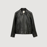 Goatskin leather jacket with wing collar, zip fastening, long sleeves with cuffs and piped pockets. - Sandro Men's leather jacket - Classic fit - Wing collar - Long sleeves with zip cuffs - Zip fastening - Piped pockets - True to size Reference: SHPBL01017_20 COMPOSITION & CARE Composition - Main material: goatskin leather - Lining: 100% polyester - Pocket lining: 100% cotton Care advice - Do not wash - Do not bleach - Do not tumble dry - Do not iron - Do not dry clean
