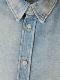 SKU: 513-000116 01 BRAND ID: CB0122- Acne Studios overshirt • Distressed finish • Buttoned cuffs • Made from lyocell denim and cotton • Front button closure • Shirt collar • Composition: 40% Lyocell, 60% Cotton • Made in: Italy