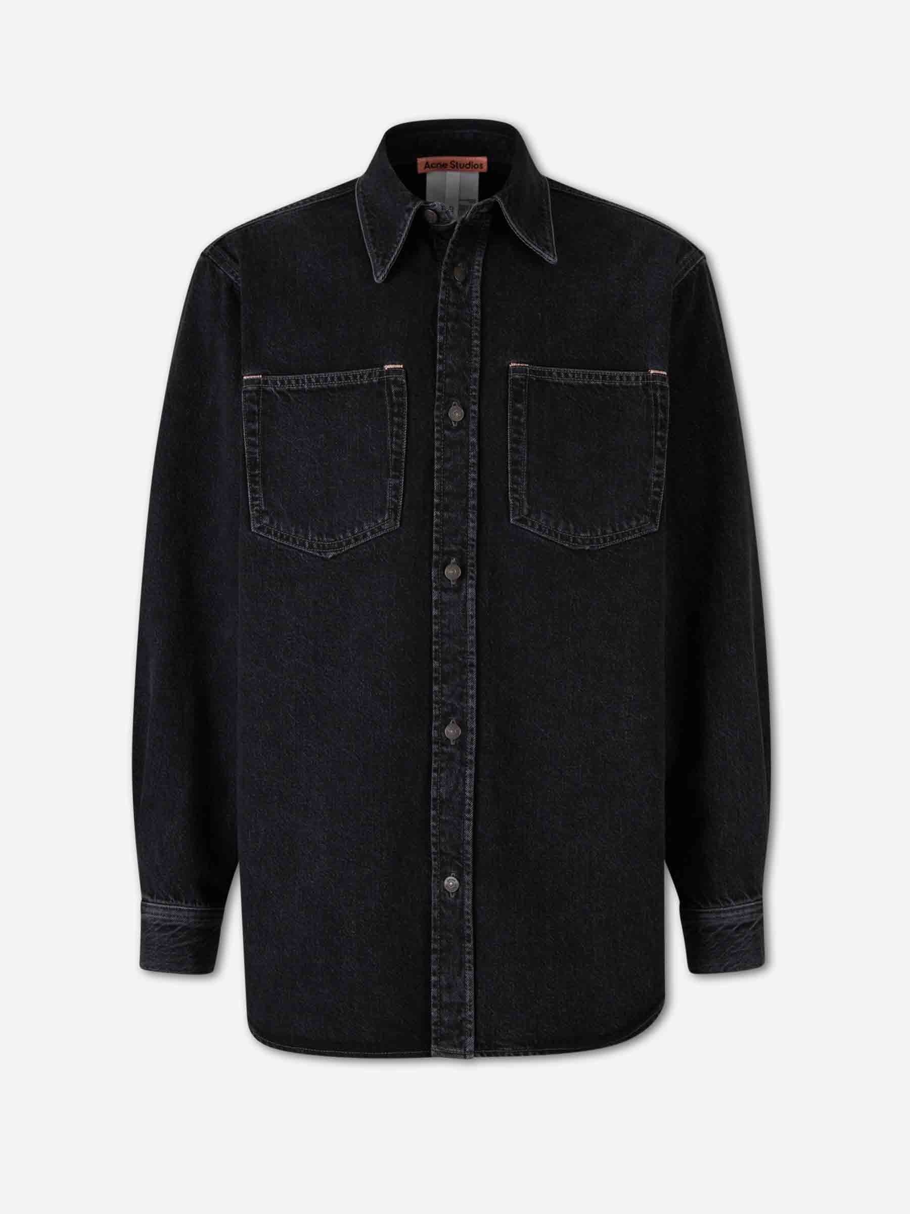 SKU: 513-000069 01 BRAND ID: FN-UX-SHIR000038 Overshirt by Acne Studios • Regular fit • Made of cotton denim • Chest pockets • Extra-long sleeves • Cuello Italiano • Botonadura clasica • Aged metal buttons • Puno angulo un boton • Espalda lisa Made in Turquia Back length: 85 cm 100% Cotton