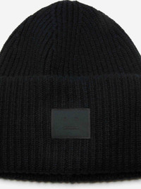 SKU: 689-000019 01 BRAND ID: FA-UX-HATS000254 Wool Knit Hat Hat By Acne Studios • Knitted in ribbed wool • Wool Knit Hat • Logo on the front Composition: 100% Wool Made in: Italy