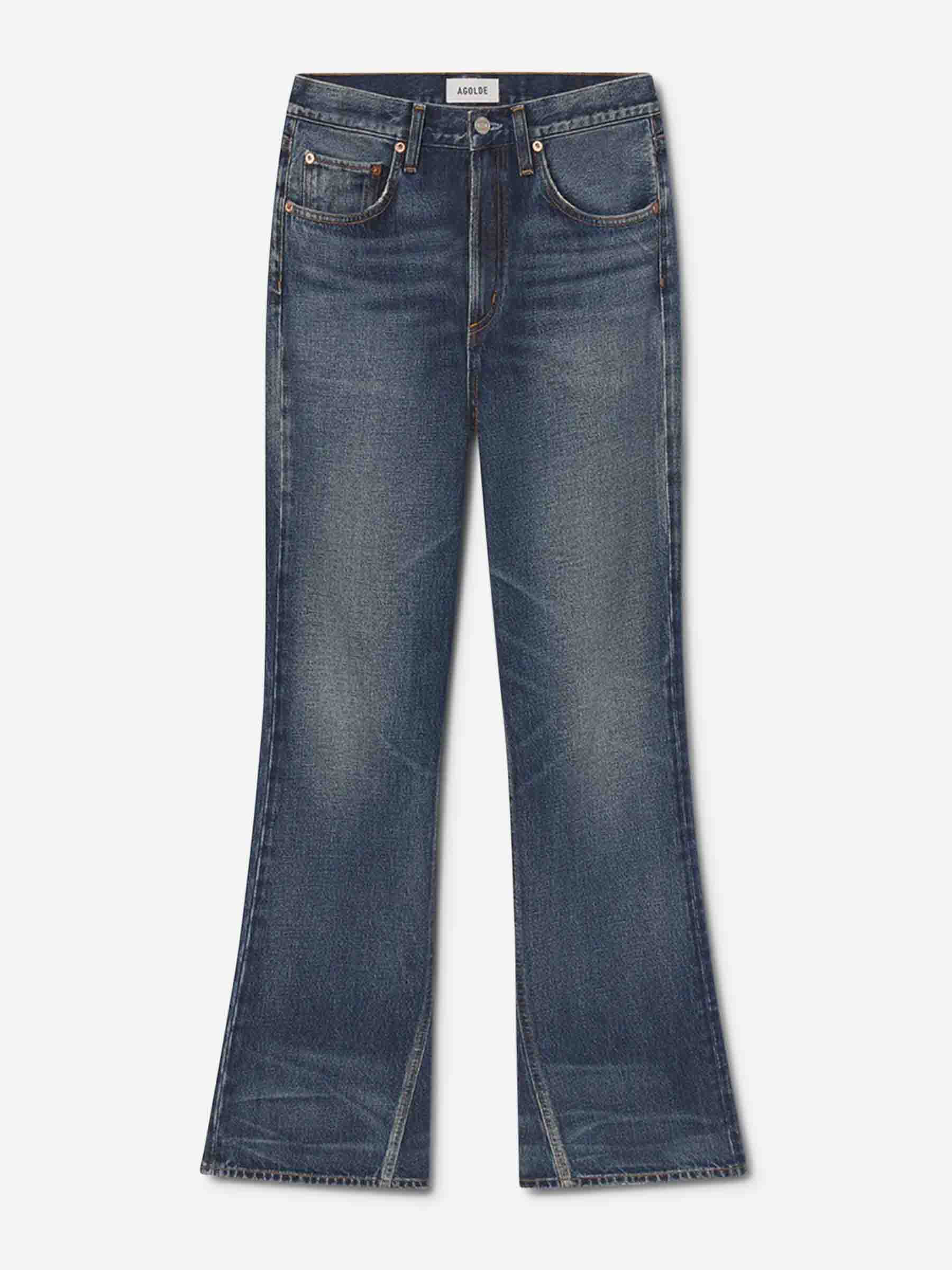 SKU: 763-001782 01 BRAND ID: A259-1206 Kick Boot Jeans Kick Boot Jeans By Agolde • Five pockets: two front, one small coin pocket, and two back • Mid-rise waist for a flattering fit • Contrasting stitching enhances the classic design • Crafted from high-quality denim fabric that ensures durability and comfort • Kick Boot Jeans • Bootcut design • Zipper closure with metal button Composition: 100% cotton Made in: United States