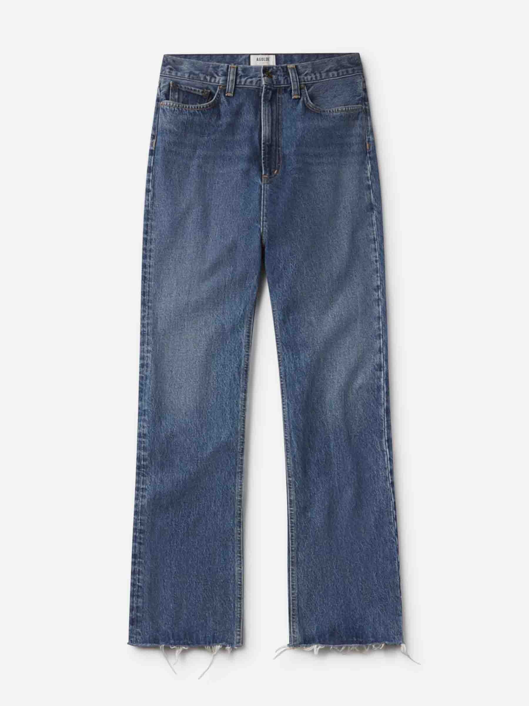 SKU: 763-001728 01 BRAND ID: A218-1535 Jeans by Agolde • High-rise flare fit • Made of cotton denim • Five pockets • Back patch pockets • Hook-and-eye • Zip fastening • Frayed hems Made in Turquia Length: 110 cm 67% regenerative cotton, 22% lyocell, 11% post-consumer recycled cotton