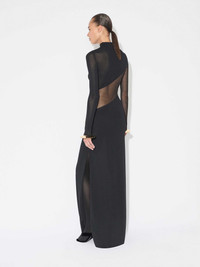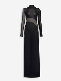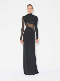 SKU: 732-001586 01 BRAND ID: AA9R2801K061B Maxi Knit Dress Dress By Alaia • High neck • Semi-transparent cutouts around the waist • Fitted fit • Made in silk knit • Maxi dress Composition: 94% viscose, 6% polyester Made in: Italy