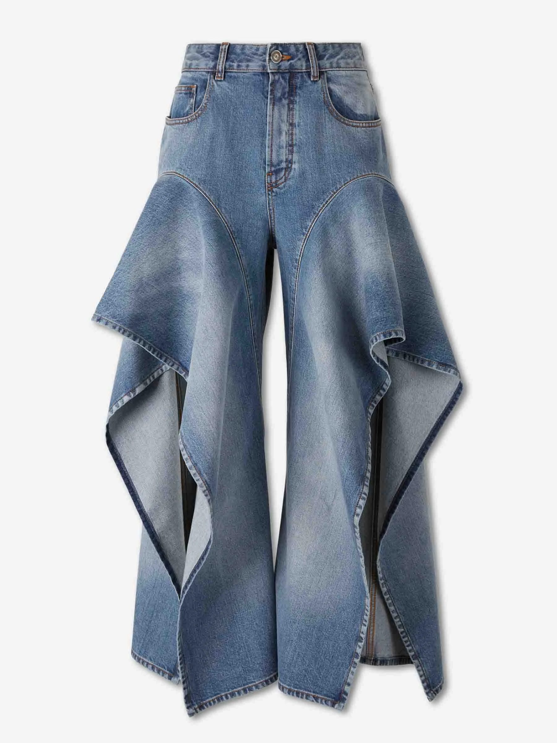 SKU: 763-001889 01 BRAND ID: AA9P1375D026C jeans By Alaia • Regular fit • Made from cotton denim • Front zip and metal button closure • Classic five-pocket design • Front of the legs open with ruffles • Composition: 99% cotton, 1% polyurethane • Made in: Italy