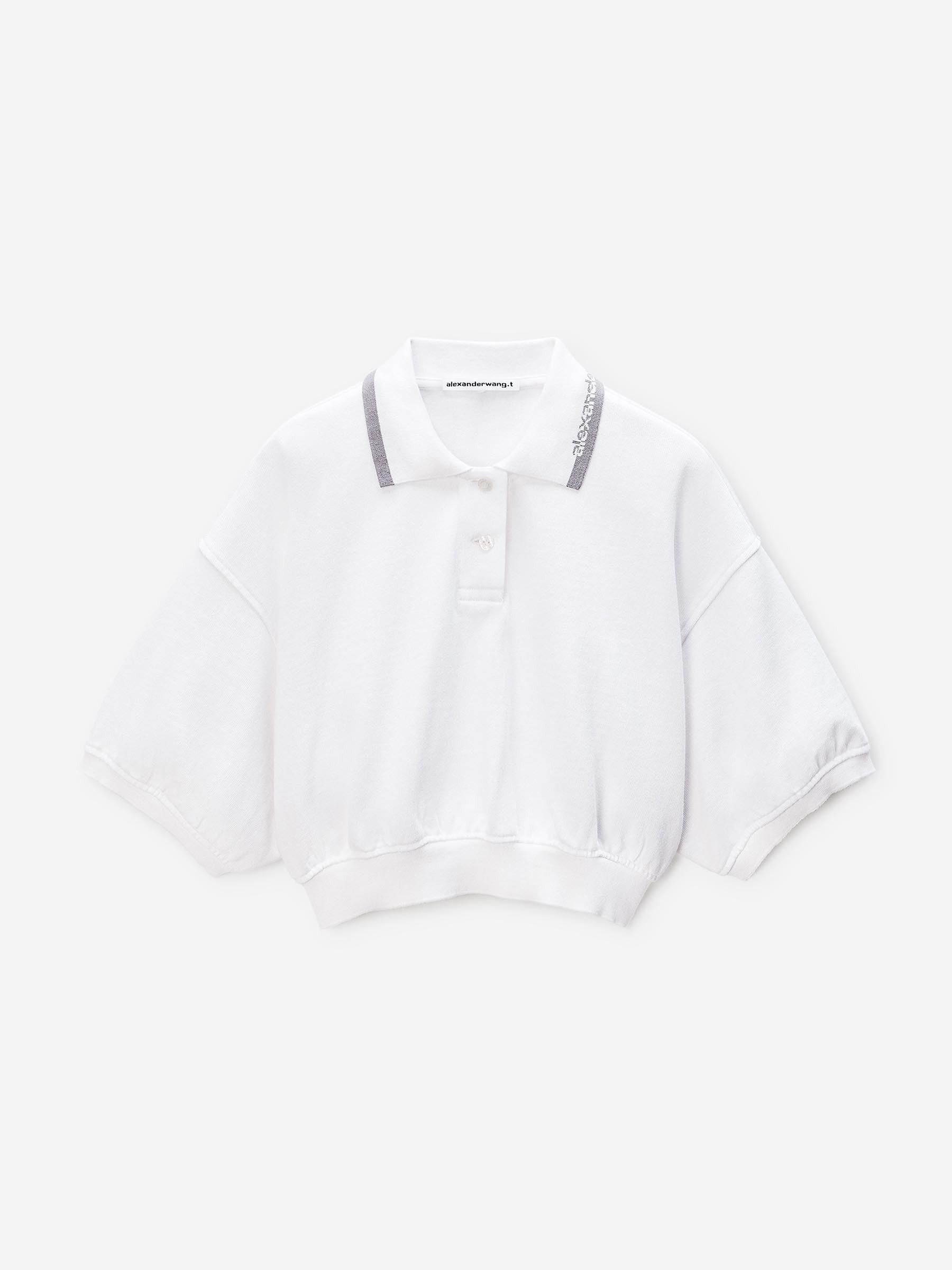 SKU: 782-001833 01 BRAND ID: 4CC1261207 Cropped Polo T-shirt By Alexander Wang • Cropped style • Made from Japanese jersey • T-shirt • Polo collar with contrast logo • Short sleeve Composition: 100% cotton China