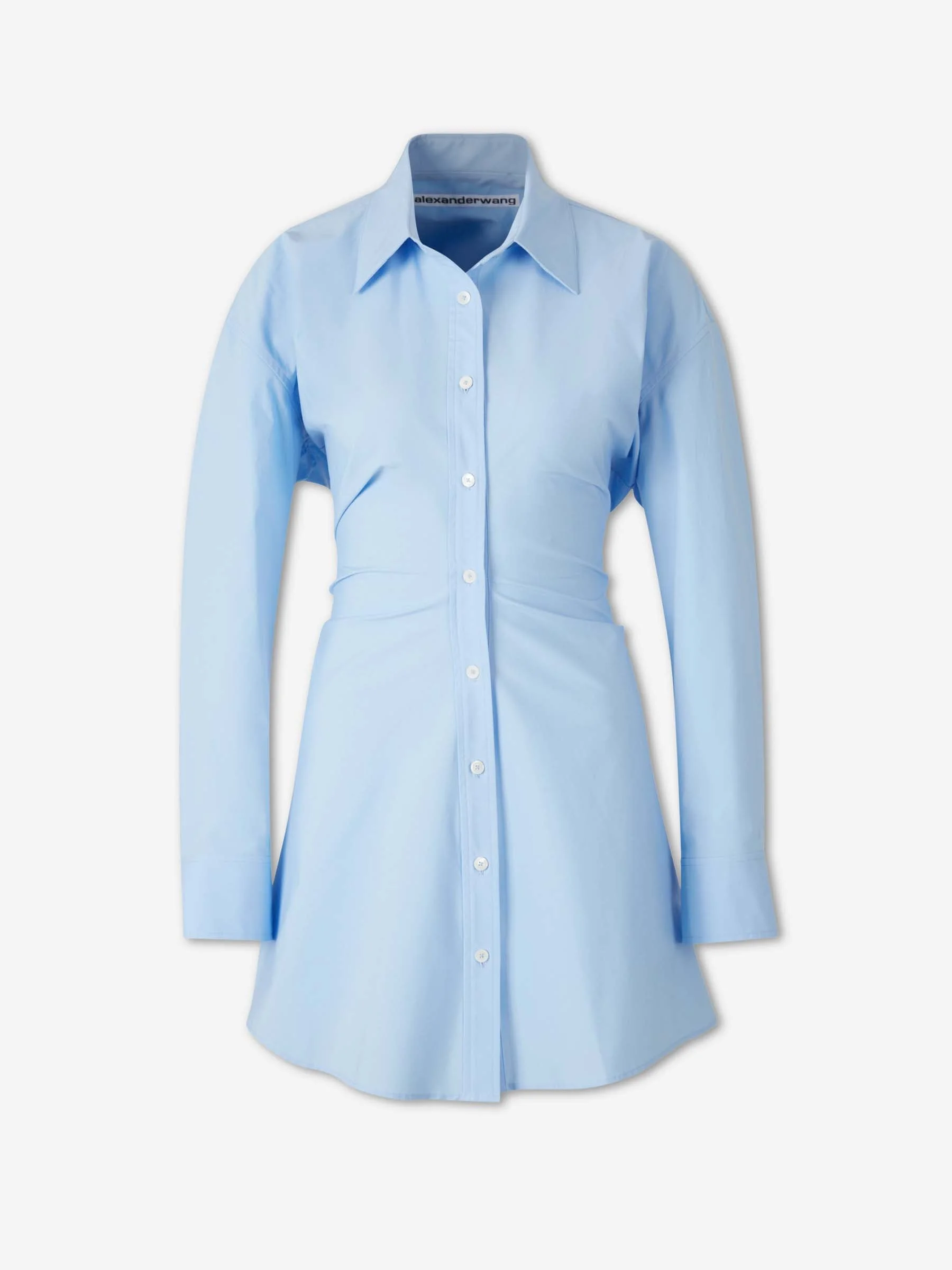 SKU: 731-006171 01 BRAND ID: 1WC2266951 Dress By Alexander Wang • mini dress • Tailored fit • Made from a blend of cotton and elastane • Button front and zip at the back • Fitted waist with ruching at the back • Composition: 96% cotton, 4% elastane • Made in: China