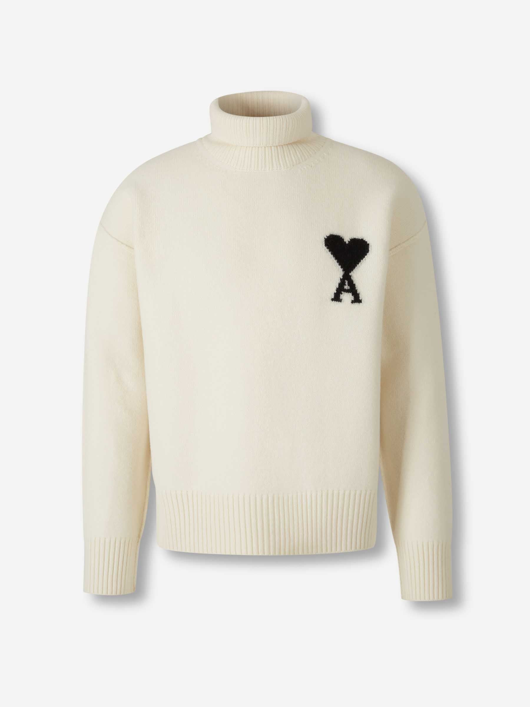 SKU: 542-002507 02 BRAND ID: UKS839.018 High Neck Jersey Jersey By Ami Paris • Ribbed finishes at the neck, cuffs, and hem • Visible seams • Regular fit • Intarsia logo on the chest • Crafted in high-quality wool knit • Long sleeve • High neck Composition: 100% wool Made in: Portugal