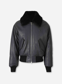 SKU: 512-002637 01 BRAND ID: H25HJK857.LH0044 Lambskin Bomber Jacket Jacket By Ami Paris • Side pockets with flap and logo stitched on the chest • Cuffs and hem in rib • Made of lambskin • Bomber jacket • Front zipper closure • Shearling collar Composition: 100% lambskin Turkey