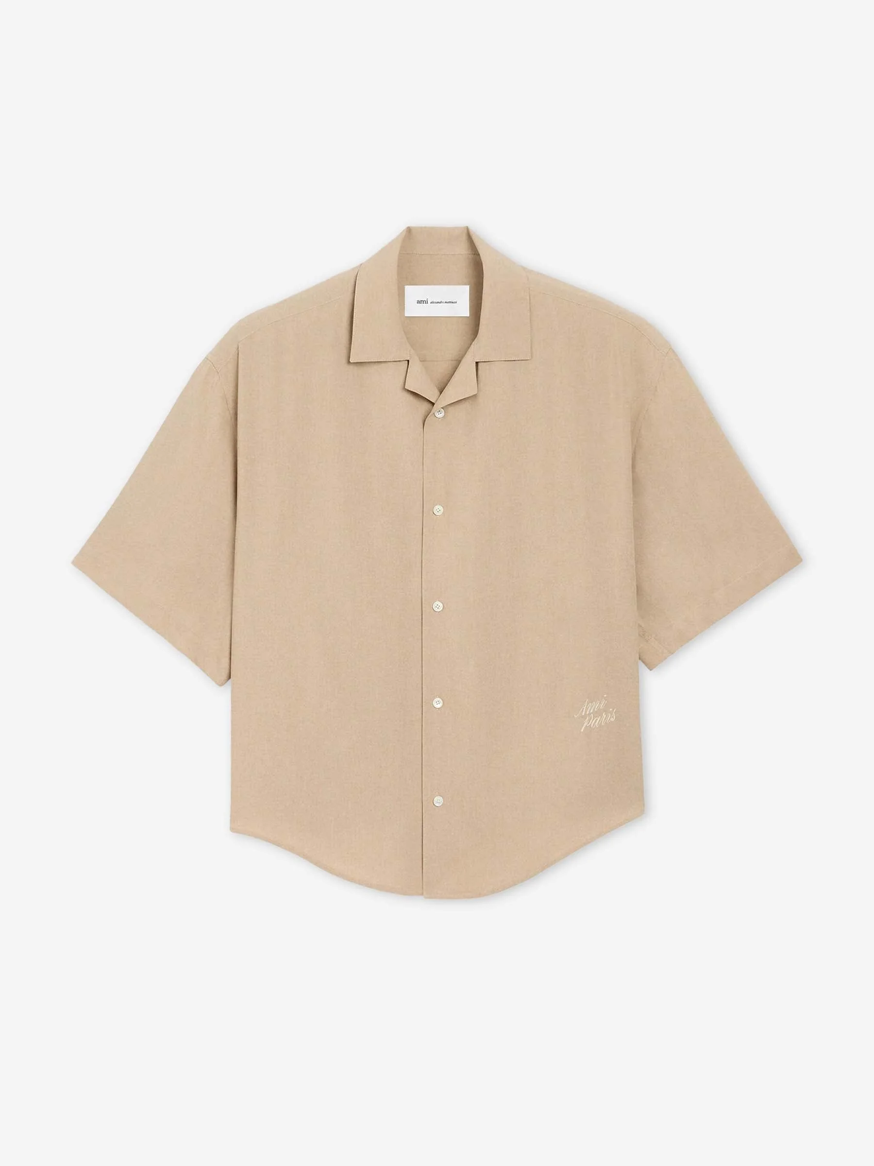 BEIGE SHORT SLEEVE EMBROIDERED AMI PARIS BOXY SHIRT