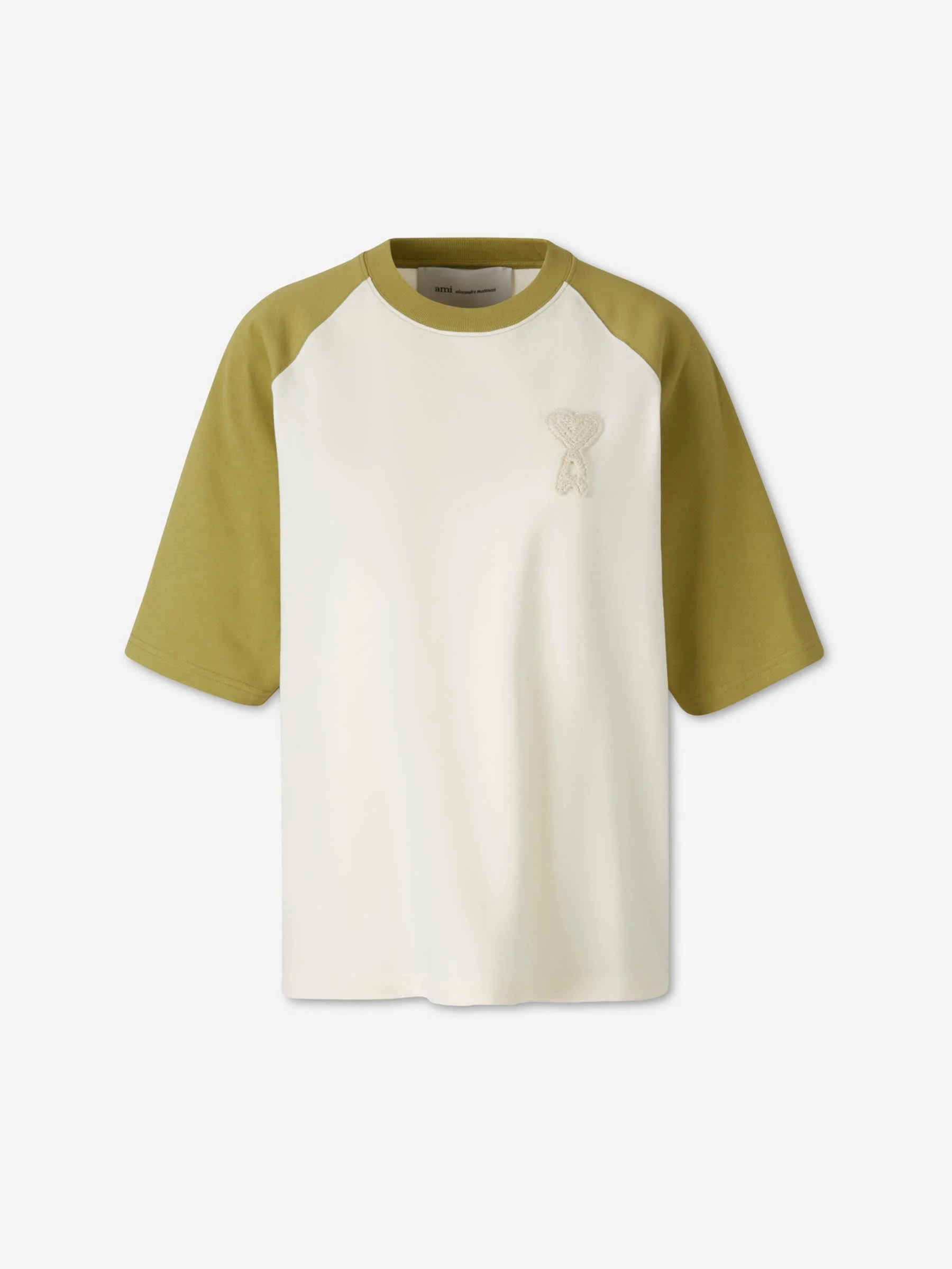 SKU: 782-001888 01 BRAND ID: UTS379.726 T-shirt By Ami Paris • Regular cut • Made from cotton knit • 'Ami de Coeur' logo embroidered on the chest • Ribbed collar • Raglan short sleeves • Round neck • Composition: 100% cotton • Made in: Portugal