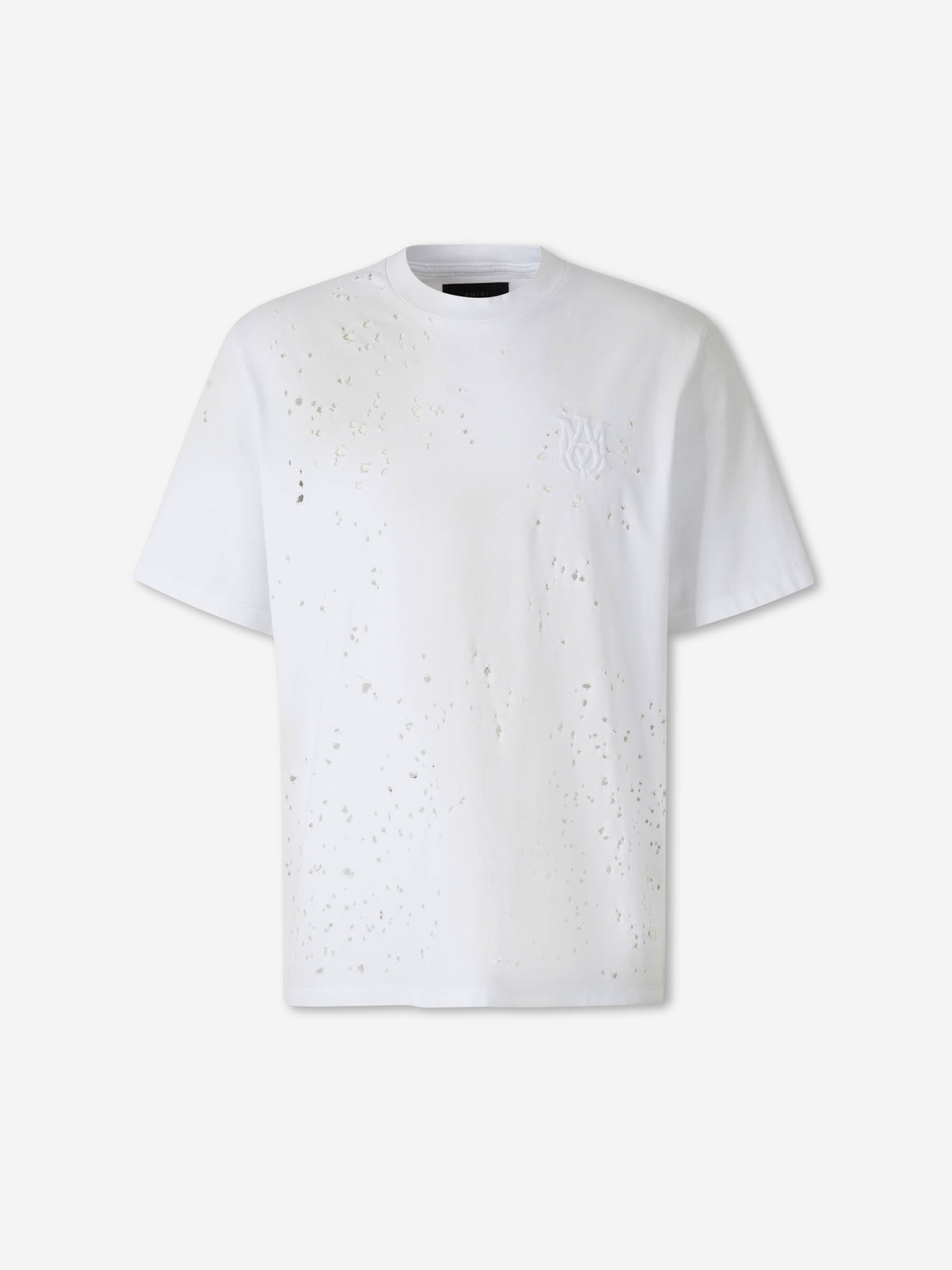 SKU: 553-004416 01 BRAND ID: AMJYTE1059 T-shirt by Amiri • Skate fit • Made of cotton fabric • Aged and worn finish • Embroidered logo on the front and back • Rounded collar • Short sleeve • Ribbed collar Straight hem Made in Italia Back length: 71 cm 100% Cotton