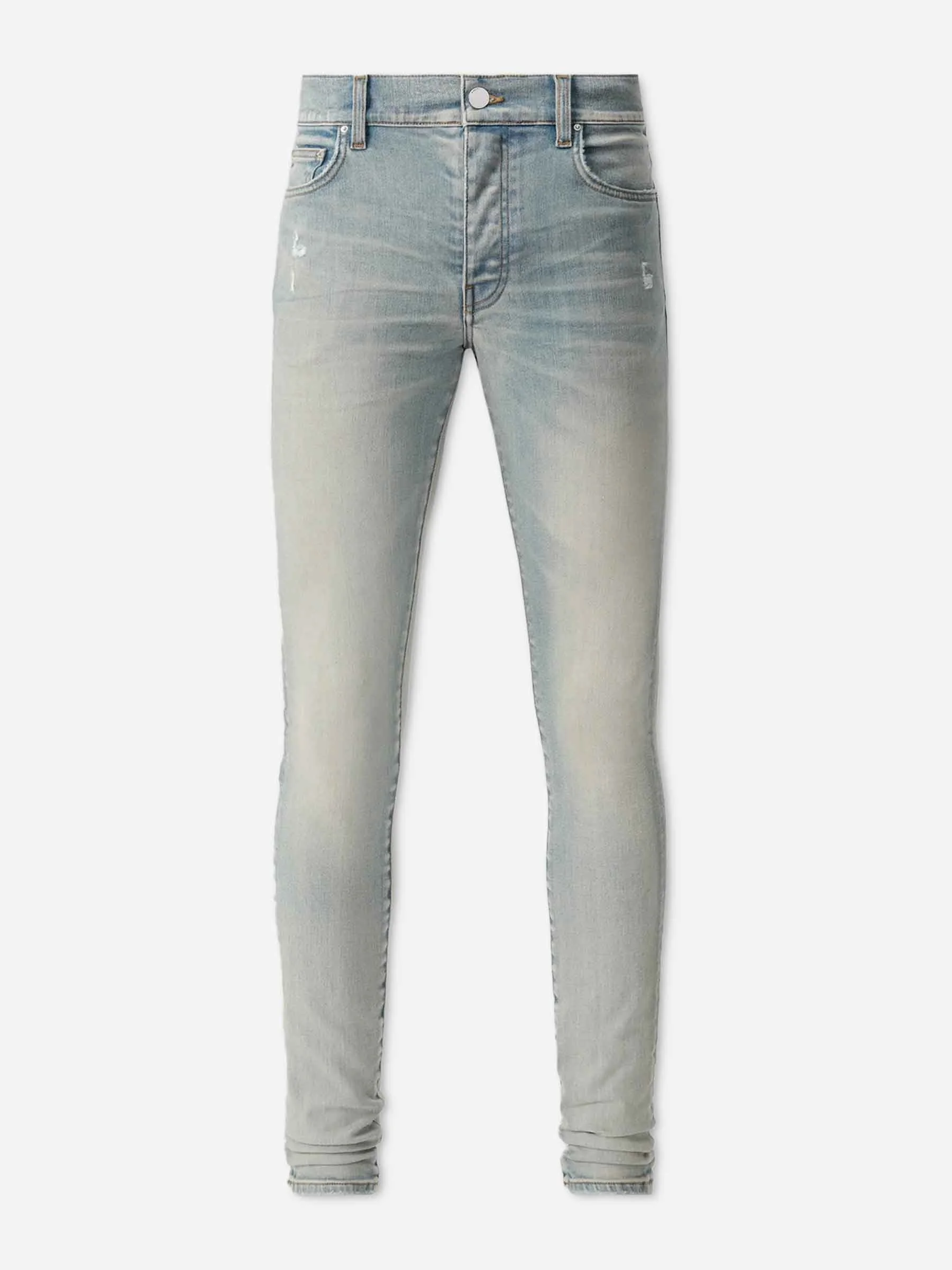 SKU: 522-003031 01 BRAND ID: PXMD002 Amiri Jeans • Front and back pockets • Waistband with belt loops • Made from stretch cotton denim • Slim jeans • Low narrow • Zip closure with button at the front • Composition: 92% cotton, 8% elastane • Made in: USA