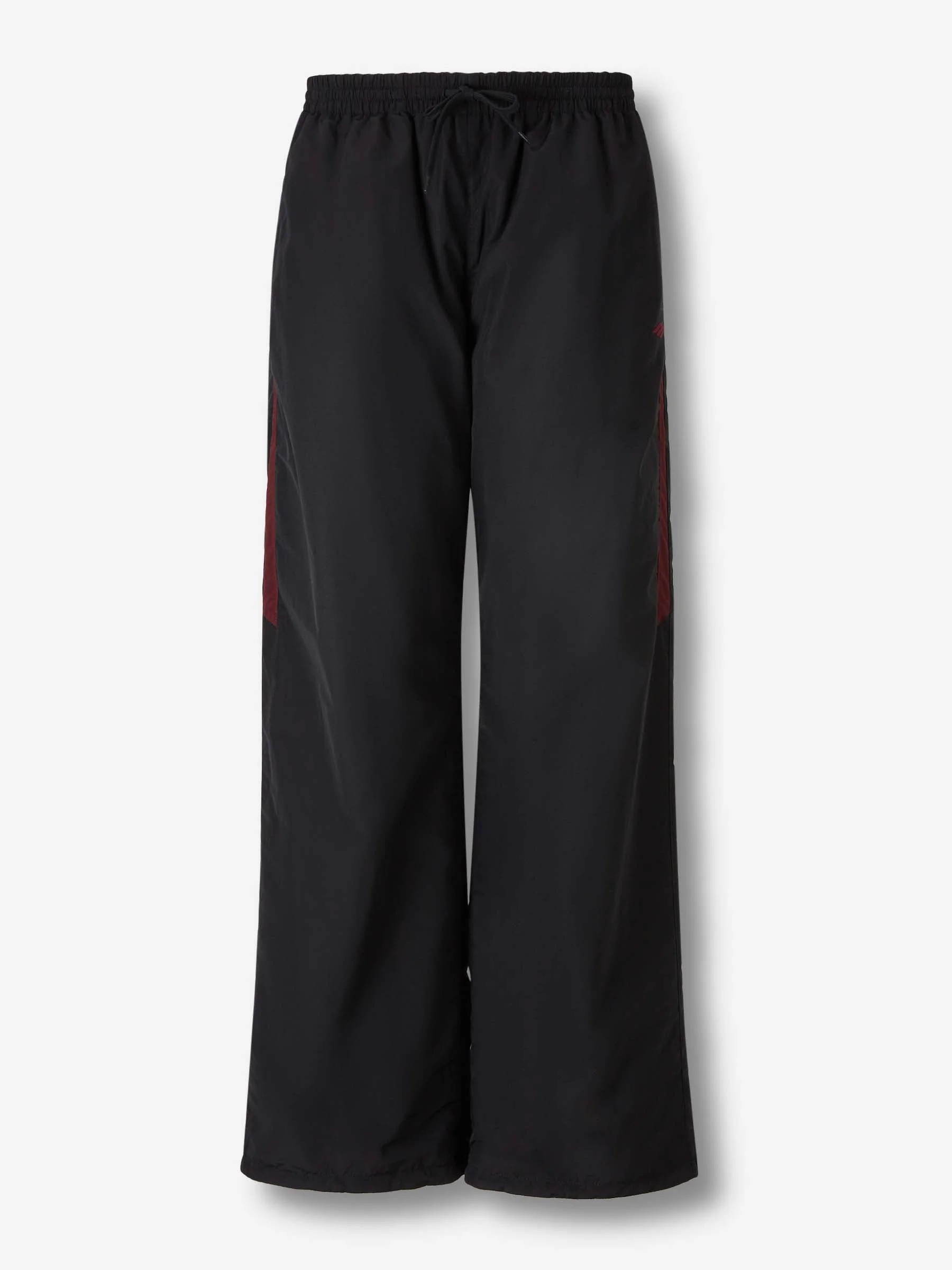 SKU: 521-003505 01 BRAND ID: 850724TPQ38 Jogger By Balenciaga • Side pockets • Elastic waistband • Composition: 54% cotton, 46% polyamide • Contrast panels on one side • 3D illustration embroidered on the left leg Made in: Italy • Made from cotton and polyamide fabric • Reversible: one side black and one side red and black • Wide leg • Drawstring closure