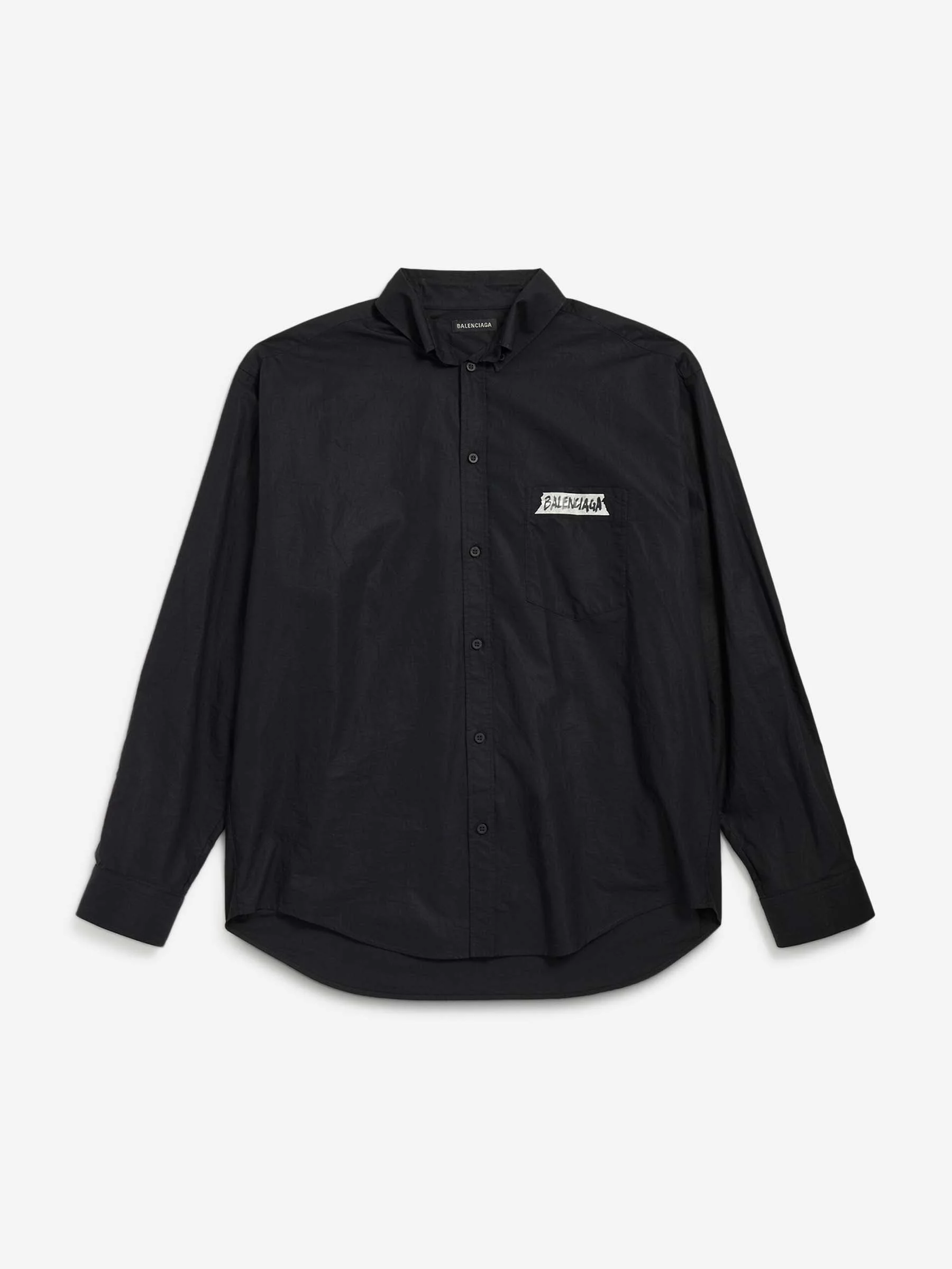 SKU: 531-006663 01 BRAND ID: 857809TRM28 Balenciaga shirt By Balenciaga • Masking tape illustration printed on the chest and back • Rounded hem • Oversized fit • Patch pocket on the chest • Buttoned cuffs • Made from cotton poplin • Front button closure • Classic collar • Composition: 100% cotton • Made in: Italy