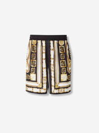 SKU: 523-001207 01 BRAND ID: FH1PA145VI41 Printed Bermudas Bermudas By Balmain • Includes side pockets • Mid elastic waist • All-over print with integrated logo • Regular fit • Made of viscose fabric • Drawstring closure Composition: 100% viscose Italy