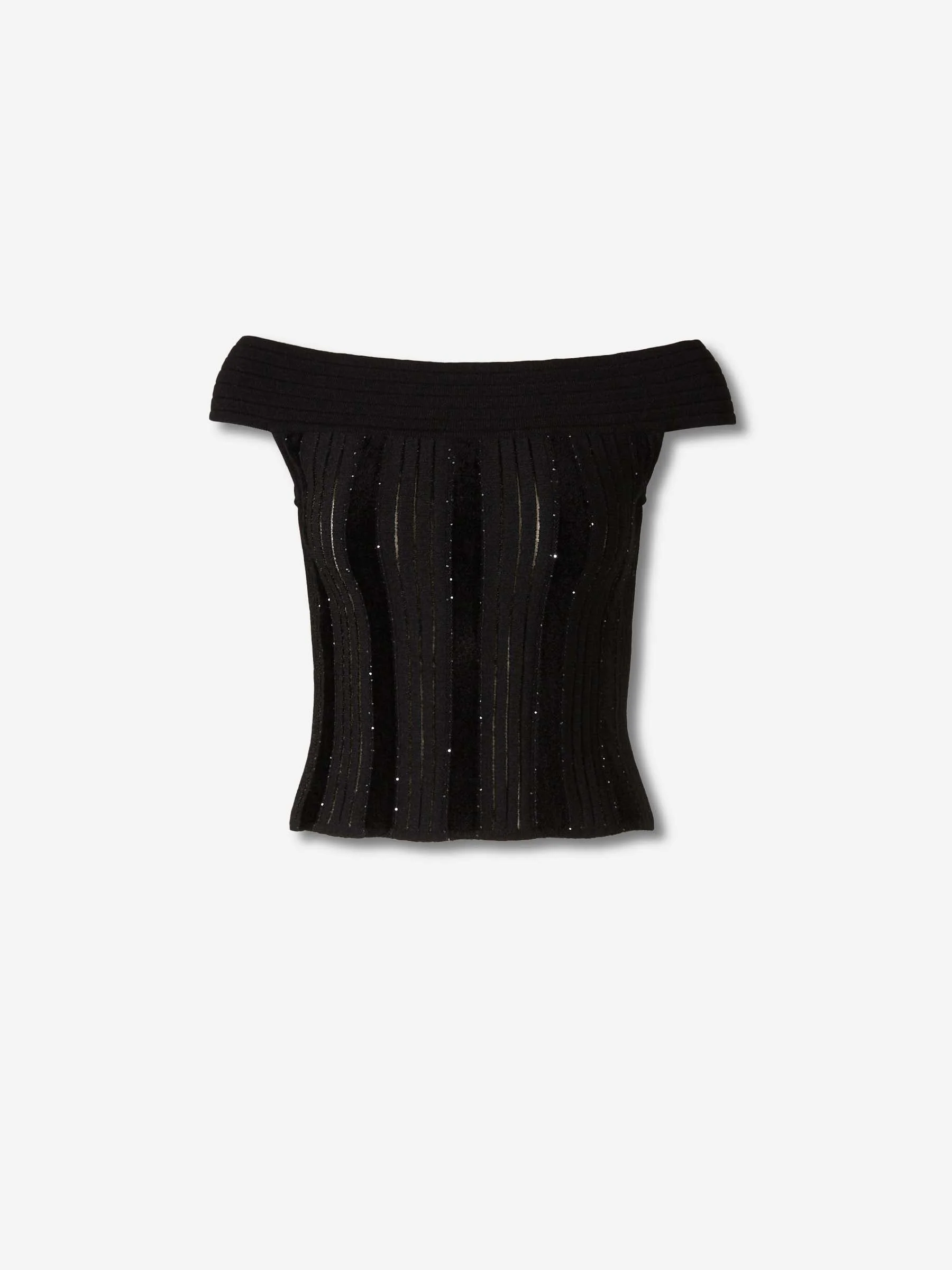 SKU: 703-002528 01 BRAND ID: GF1AJ080KJ37 Balmain top • Sequin embellishment • Short and fitted design • Tubular knit and velvet • Made from viscose knit • Jersey • Boat neckline • Composition: 77% viscose, 15% polyester; 8% polyamide • Made in: France