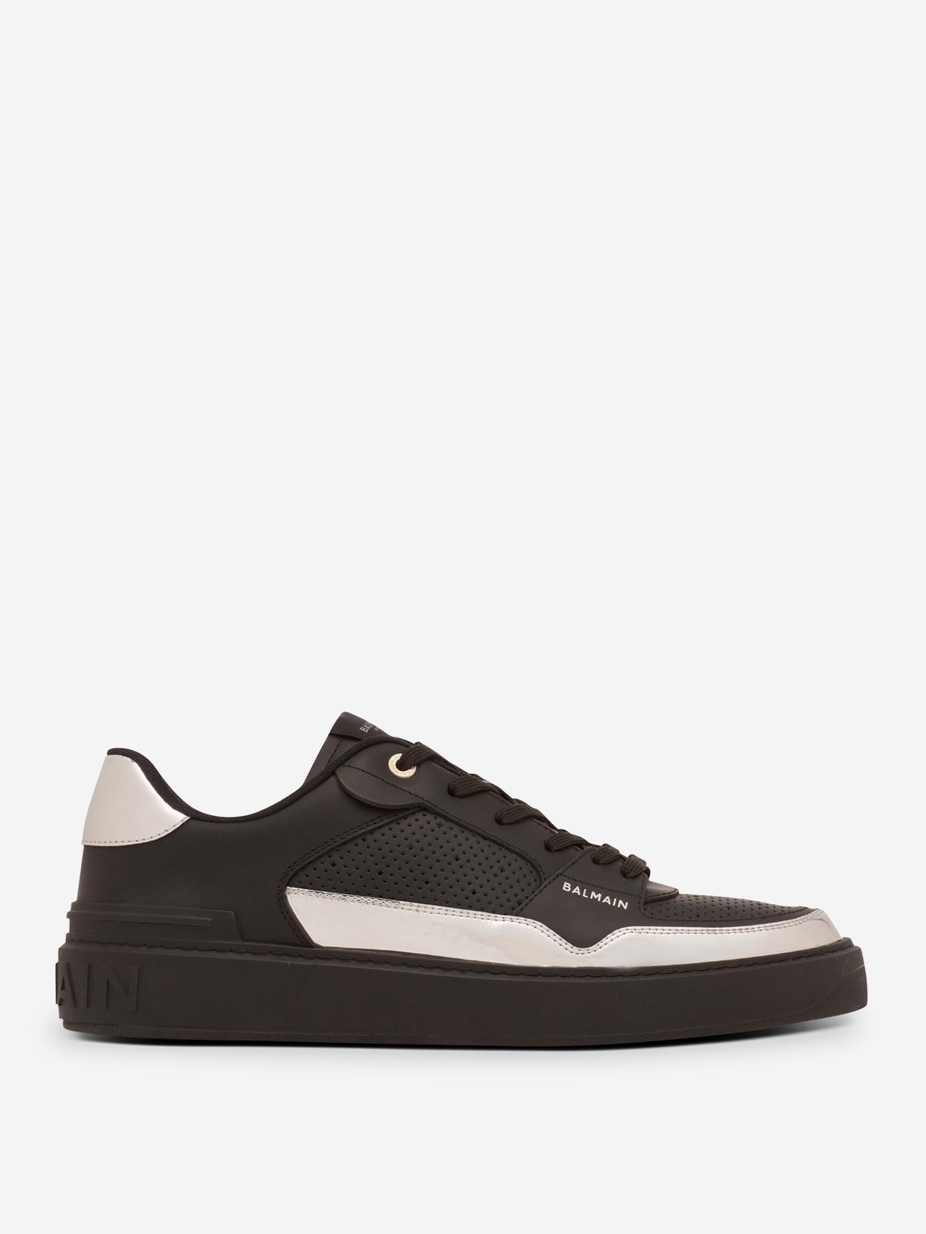 SKU: 616-003172 01 BRAND ID: FM1VI349LCFS Sneakers B-Court Flip Sports Shoes By Balmain • 100% calfskin leather • Thick rubber outsole • Embossed Balmain logo on the side and rear • Technical fabric lining and leather insole • Perforated leather on the lower part and sides with silver mirror effect synthetic leather insert on the front and back • Lace-up closure with engraved silver eyelets • Tongue with woven label featuring Balmain Paris logo • Sports Sneakers Made in: France