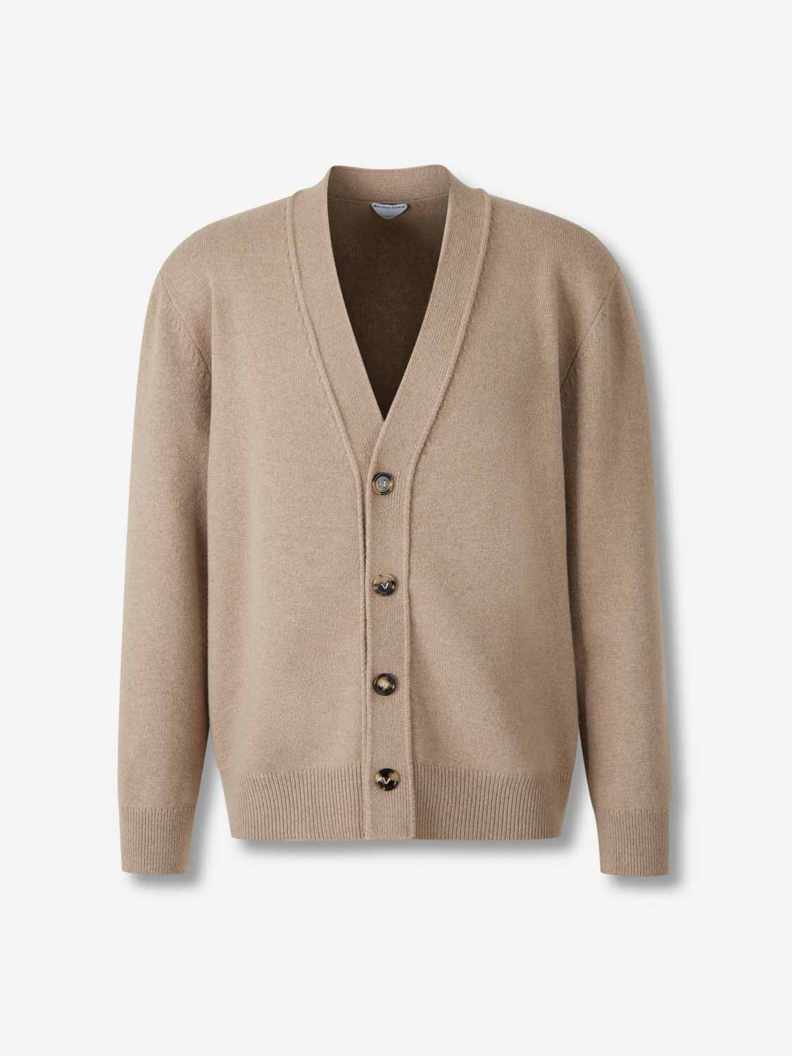 SKU: 543-001021 01 BRAND ID: 843997V2MM0 Cashmere Knit Cardigan Cardigan By Bottega Veneta • Ribbed cuffs and hem • Regular fit • Crafted from premium cashmere offering a soft texture • Button closure • V-neck Composition: 97% cashmere, 2% polyamide Italy