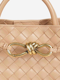 SKU: 810-008294 01 BRAND ID: 766014VCPP1 Small Andiamo Bag Bag By Bottega Veneta • One main compartment • Intrecciato lining of bonded lambskin • Measurements: 25 cm x 20 cm x 10 cm • Signature knot detail • Internal zip pocket • Bag • Leather handle • Magnetic closure • Sliding strap • Crafted in calfskin Composition: 100% calfskin Made in: Italy