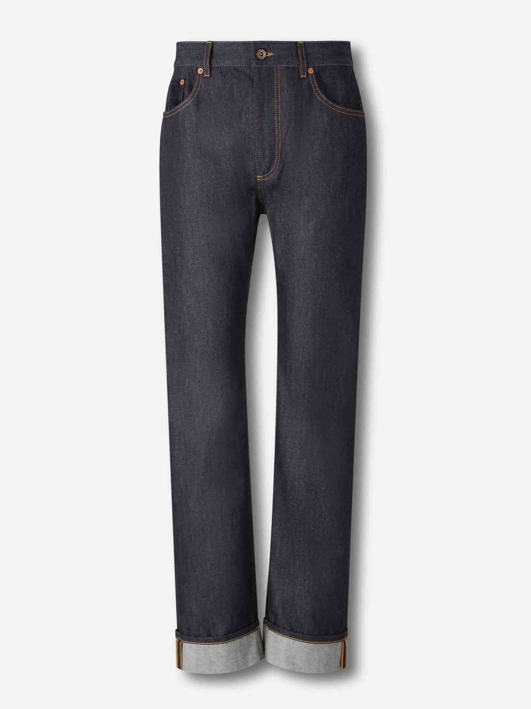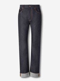SKU: 761-003846 01 BRAND ID: 831607V5MG0 Straight Cotton Jeans Straight jeans By Bottega Veneta • Two front pockets, leather match and two back pockets • Waist with belt loops • Contrast stitching details • Classic fit • Made from cotton denim • Straight jeans • Straight hem • Front closure with zipper and button Composition: 100% cotton Italy