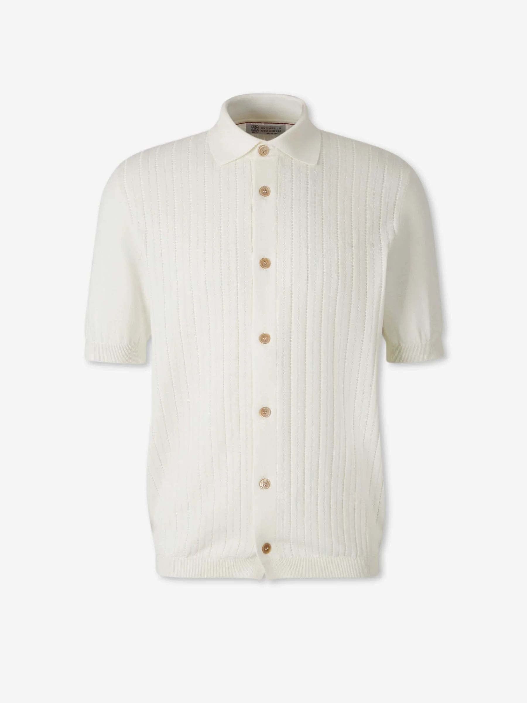 SKU: 555-000007 01 BRAND ID: M29204006 Shirt By Brunello Cucinelli • Knitted shirt • Regular fit • Made from cotton knit • Front button closure • Shirt collar • Short sleeve • Composition: 100% cotton • Made in: Italy