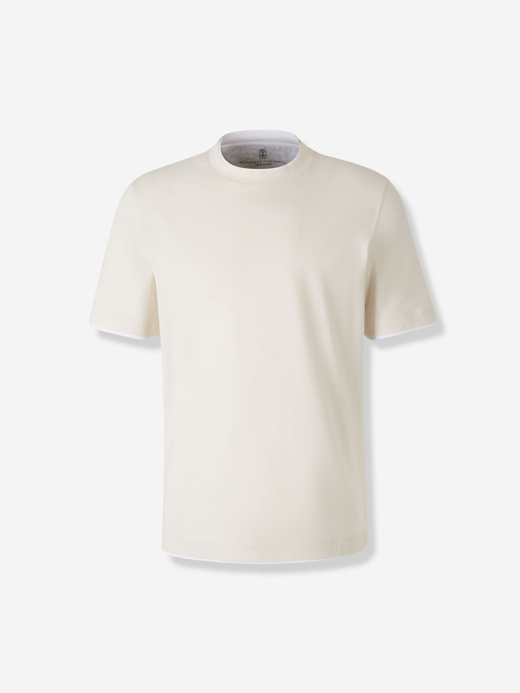 SKU: 553-004496 01 BRAND ID: M0B137427 Short Sleeve T-shirt T-shirt By Brunello Cucinelli • Ribbed neckline • Straight bicolor cuffs, neck, and hem • Crafted in cotton jersey • Round neck Composition: 100% cotton Made in: Italy