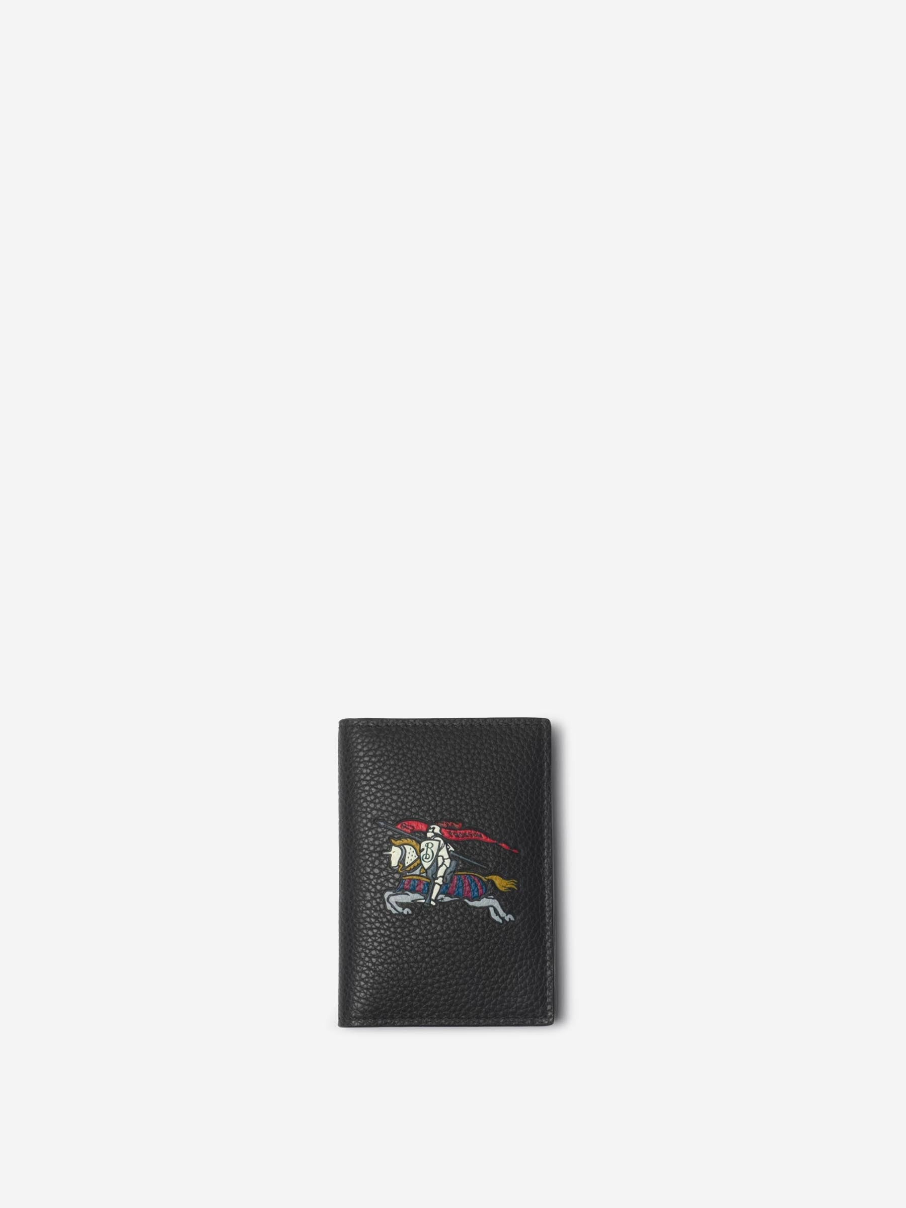 SKU: 691-001520 01 BRAND ID: 8115390 Foldable Leather Cardholder Cardholder By Burberry • Four card slots and two open pockets • Dimensions 11 x 7.5 cm • Equestrian Knight Design emblem in color • Made of grained cowhide leather • Burberry logo engraved inside Composition: 100% leather Italy