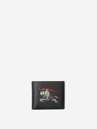 SKU: 691-001519 01 BRAND ID: 8115391 Foldable Wallet EKDP Wallet By Burberry • Has eight card slots, a bill compartment with divider, and two open pockets • Dimensions: 10 cm x 11 cm • Features the Equestrian Knight Design logo • Made of grained cowhide leather Composition: 100% leather Italy
